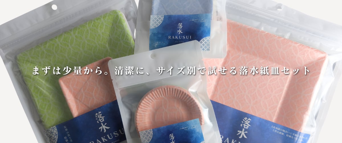 18cm角と9cm角、用途に合わせて使い分けできる2サイズセット。 メイン用・取り皿・試食用など、さまざまなシーンに対応できます。 チャック付きパウチ入りで、サイズごとに衛生的に保管可能。 少量ずつ試せるセットなので、落水紙皿を初めて導入する方にもおすすめです。