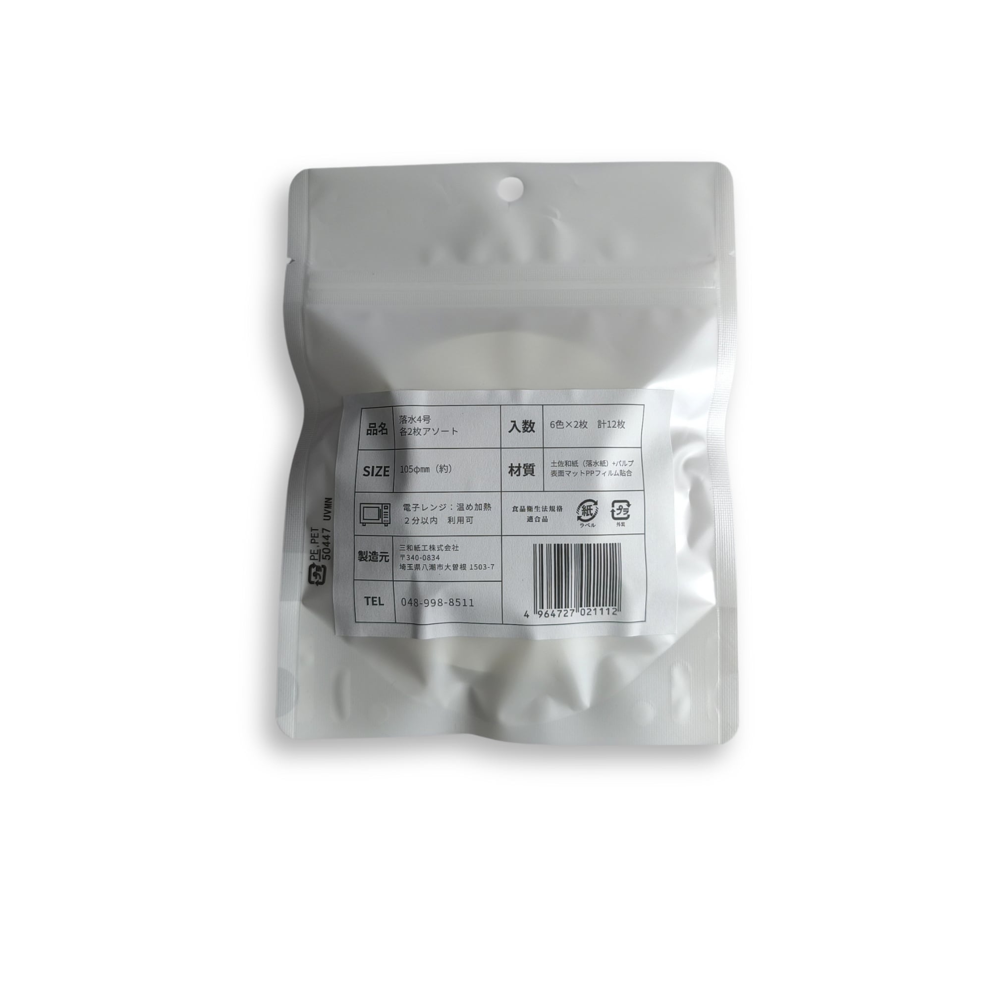 落水紙皿 丸型(約10.5cm)12枚セット〈6色アソート〉
