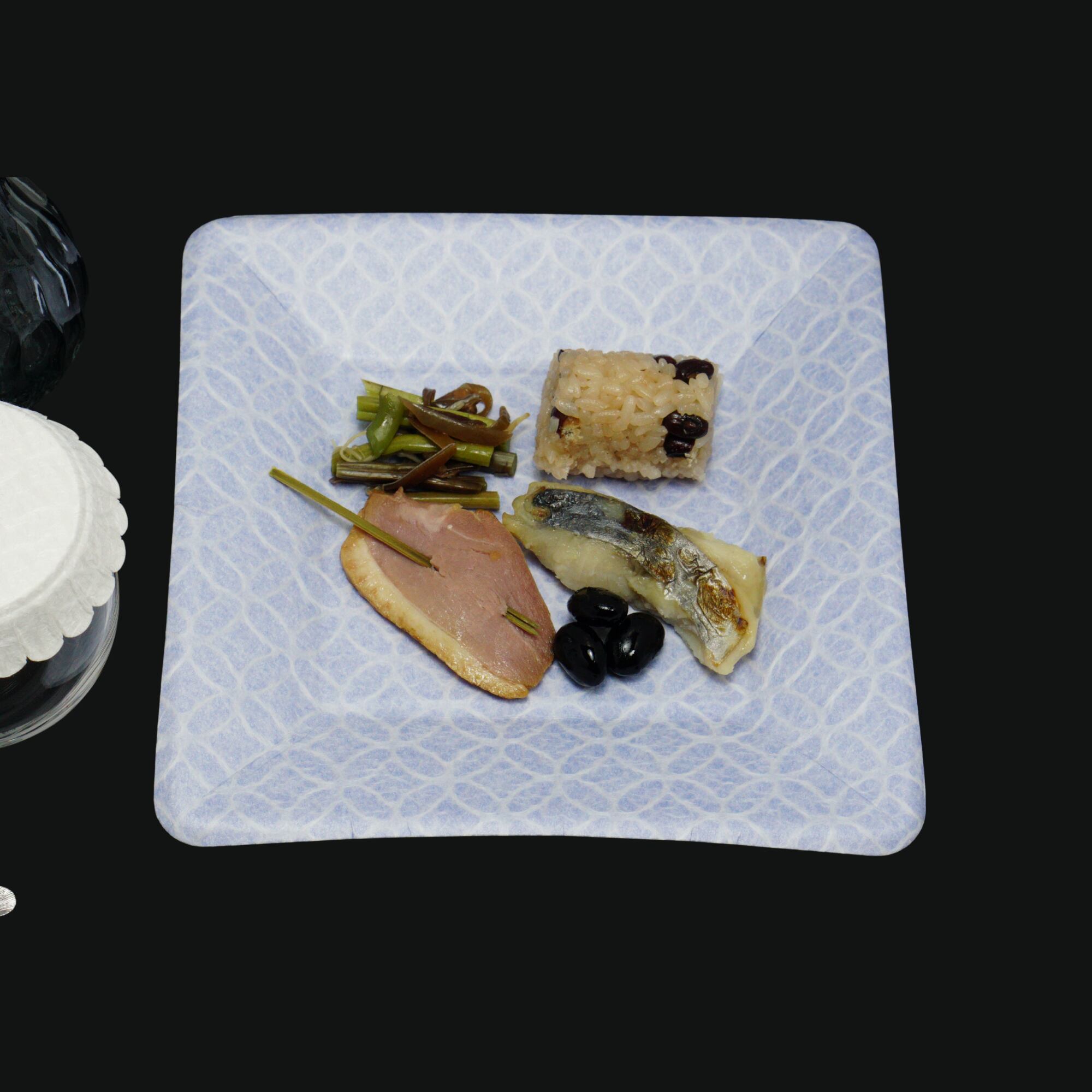 存在感のある18cm角サイズの落水紙皿。