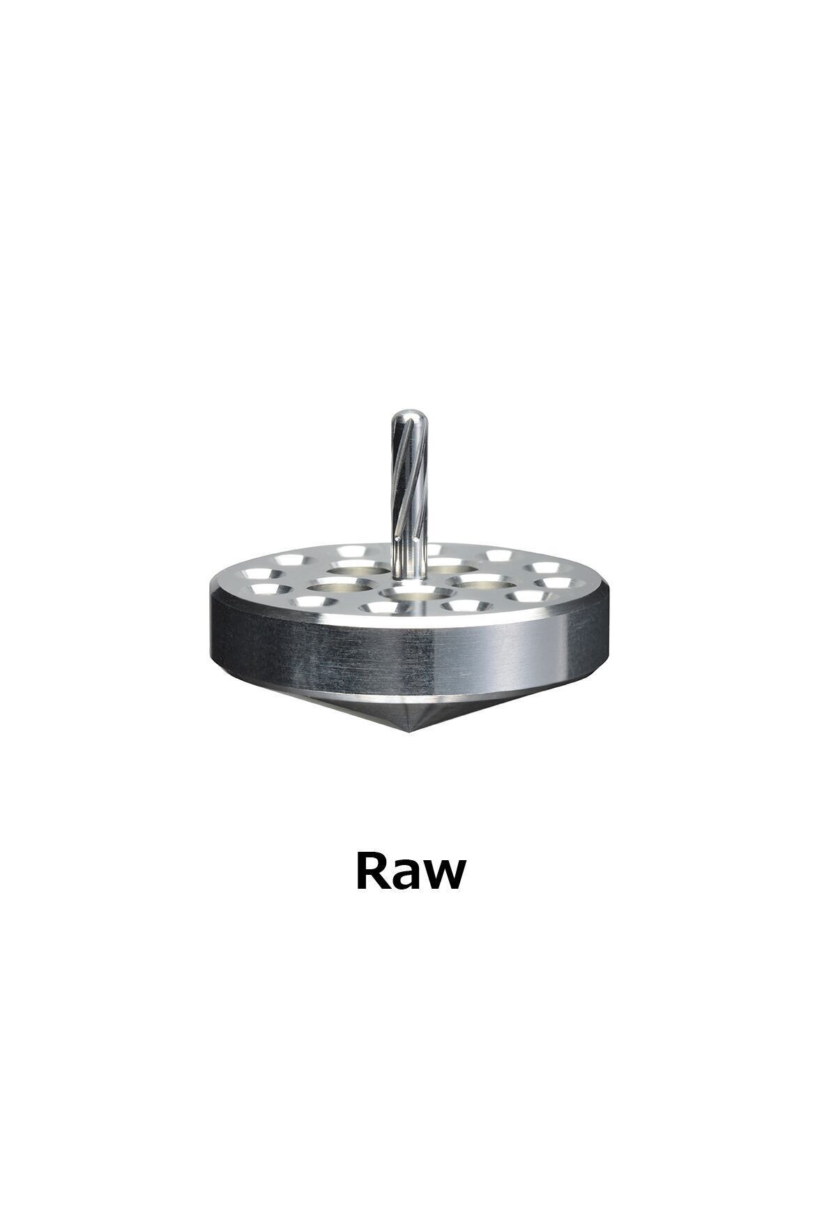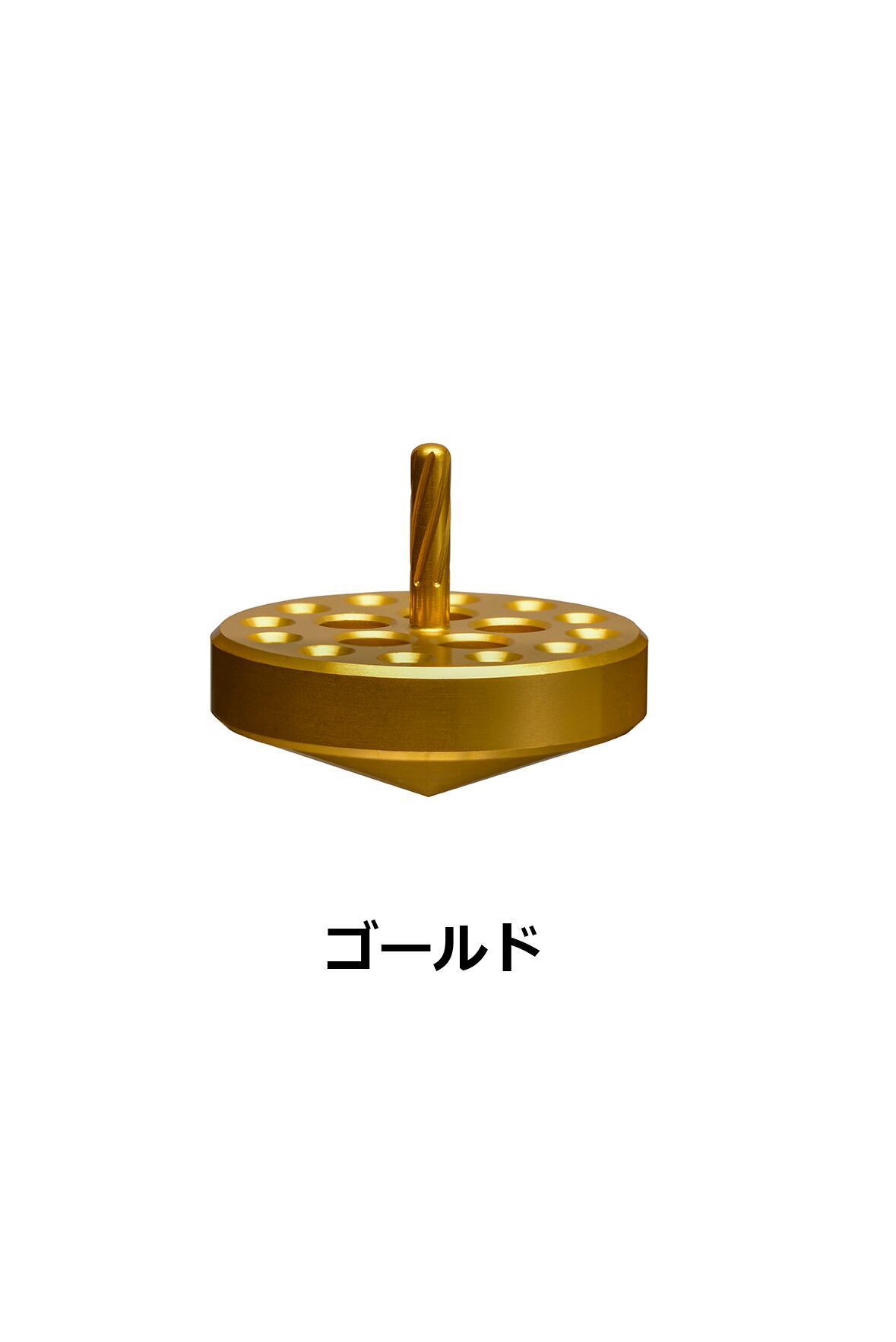 複数の穴が空いていながら軸がブレずに、止まっているかのように静かに回るジュラルミ削り出しのアルミ独楽です。アルミニウムの軽快な独楽の回転が癖になります。